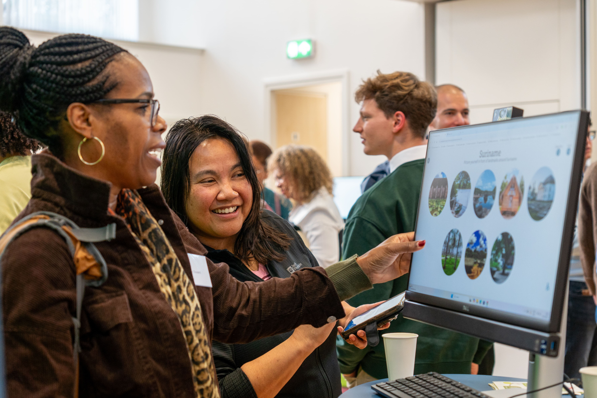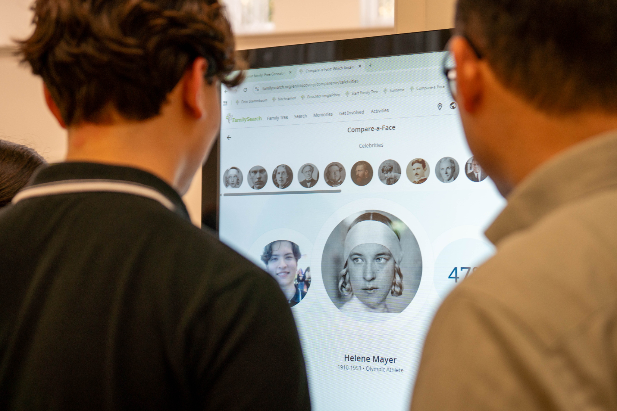 Bezoekers konden in de ontdekkingshoek verschillende mogelijkheden van FamilySearch uitproberen om op een leuke manier familiegeschiedenis te ontdekken. Ze konden ook foto’s maken met een green screen-achtergrond van het land van herkomst van henzelf of hun voorouders, ontdekken op welke voorouder ze leken, of welke bekende historische figuur — tot veel hilariteit. Naast FamilySearch waren vertegenwoordigers aanwezig van de Indische Genealogische Vereniging (voor de derde keer), de Stichting voor Surinaamse Genealogie, de Belgische organisatie Histories en hun website familiegeschiedenis.be.