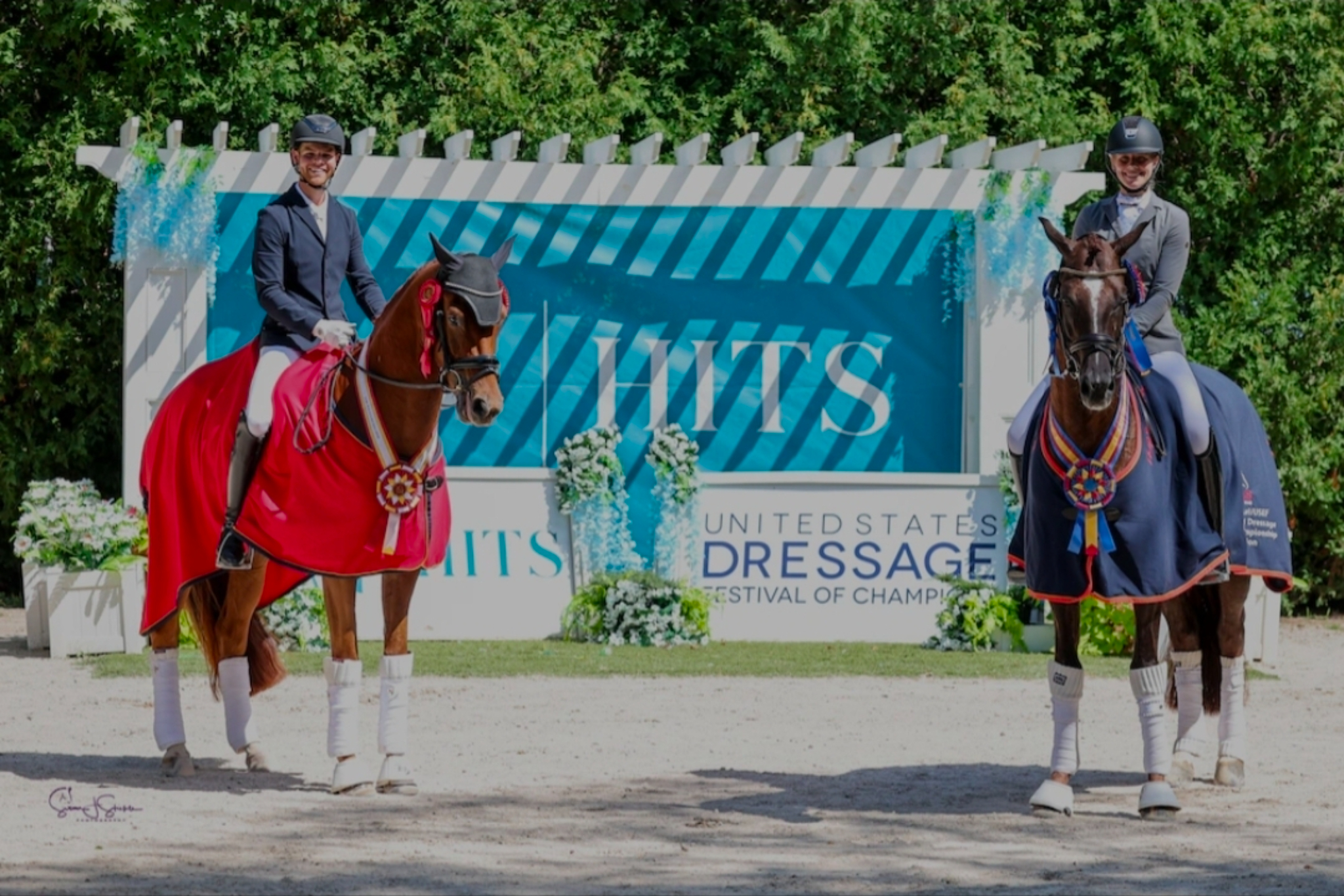 Charell Garcia op de eerste plaats ( rechts) en Justin Giles op de tweede plaats geëindigd tijdens de U.S. Dressage Festival of Champions, een dressuurkampioenschap op landelijk niveau.© 2025 by Church News, aangeleverd door Charell Garcia‘Just have fun’